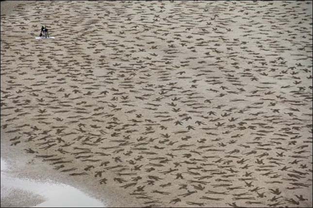 Jamie Wardley és Andy Moss brit művészek egy önkéntes csapat segítségével több mint 9000 katona sziluettjét készítette el a normandiai tengerparton az 1944-es partraszállásban elesett katonák tiszteletére. A normandiai partraszállás a második világháború egyik hadművelete volt, melynek során a szövetséges csapatok partra szálltak a náci Németország által megszállt Normandiában, új nyugati frontot nyitva a háborúban.