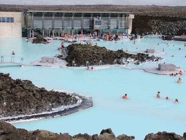 A Blue Lagoon nevű “strand” Izlandon egy gőzforrásokra épült erőmű mellett található fürdő. Az egyedi hangulatot a barnás-fekete lávatömbök biztosítják, ezek között a gőzfelhő felé haladva egyszer csak egy ipartelepet találunk. A “medence” közvetlenül a hőerőmű sistergő alumínium csövei és kéményei mellett található, egy természetes mélyedésben. Itt lehet fürödni és élvezni a gyógyító fehér iszap hatását. A víz 32-36 fokos, ami úszkálásra nem nagyon alkalmas, viszont kellemesen el lehet benne üldögélni.