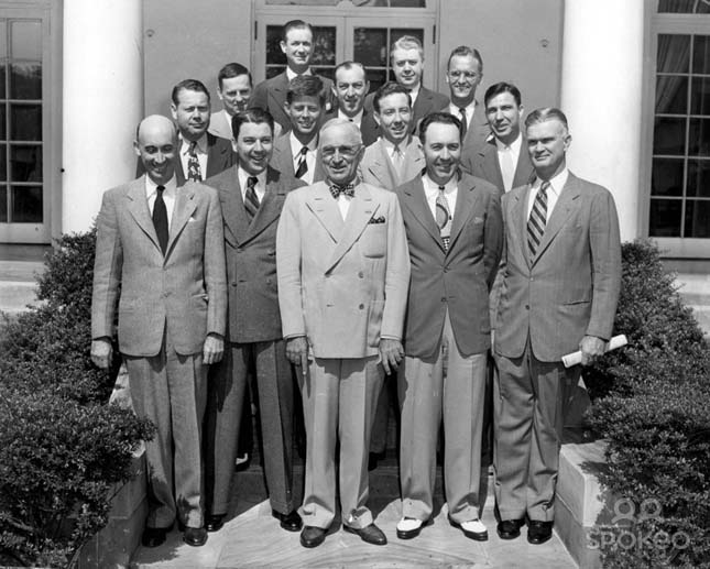 Harry Truman igen rossz állapotban örökölte meg a Fehér Házat. Harry S. Truman (1884. május 8. – 1972. december 26.) az Amerikai Egyesült Államok 34. alelnöke és 33. elnöke (1945–1953). Franklin D. Roosevelt utóda. 1945. április 12-én a Fehér Házba hívatták, ahol Eleanor Roosevelt e szavakkal fogadta: „Harry, az elnök halott.” A döbbent Truman csak ennyit tudott kérdezni: „Tehetek valamit önökért?” Az asszony így válaszolt: „Talán inkább mi tehetünk valamit magáért? Mert most már maga van bajban!” Truman később e szavakkal idézte fel érzéseit: „Mintha a Hold, a csillagok, és az összes bolygó rám zuhant volna…”