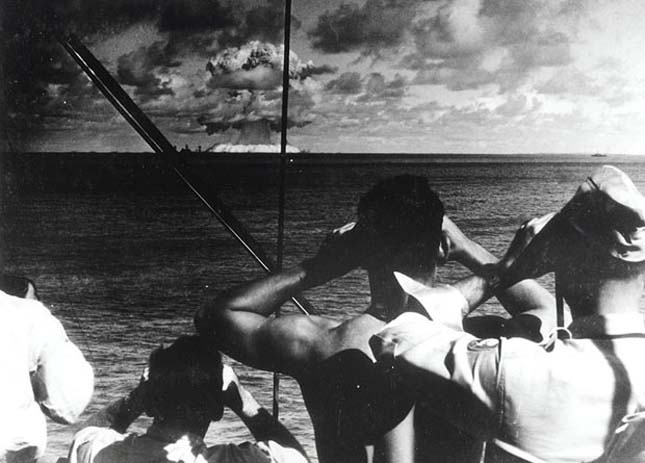 Az Egyesült Államok 1946. július 25-én a Csendes- óceán térségében a Bikini szigeteknél sikeres vízalatti nukleális kísérletet hajtott végre, ami hatalmas radioaktív vízoszlopot dobott fel és kilenc hajót elsüllyesztett. A bomba ereje minden képzeletet felülmúlt és a létrehozásán bábáskodó tudósok elképzeléseit is felülmúlta. Ezzel új fejezet kezdődött a nukleáris fegyverkezési versenyben. E verseny keretében olyan mennyiségű arzenált hoztak létre a szuperhatalmak, amely többszörösen is képes lett (és képes napjainkban is) elpusztítani az emberiséget a a Földről.