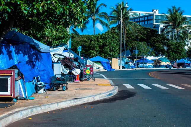Az elmúlt években folyamatosan romlik a helyzet Hawaii-on, ahol immár 487 hajléktalan jut 100 ezer emberre és a helyzetet rontja a kevés és drága földterület, ingatlan, valamint az alacsony fizetés is. A legrosszabb a helyzet Oahu szigeten, ahol a legtöbben élnek és itt van a legtöbb a hajléktalan is. A helyi önkormányzat már megtiltotta Waikiki járdáin az üldögélést és a fekvést, cserébe hatalmas szállítókonténereket terveznek szállásokká átalakítani.