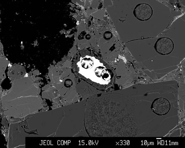 Az EET 83309 katalógusjelű meteorit benne az apró opáltöredékekkel (Forrás: H. Downes)