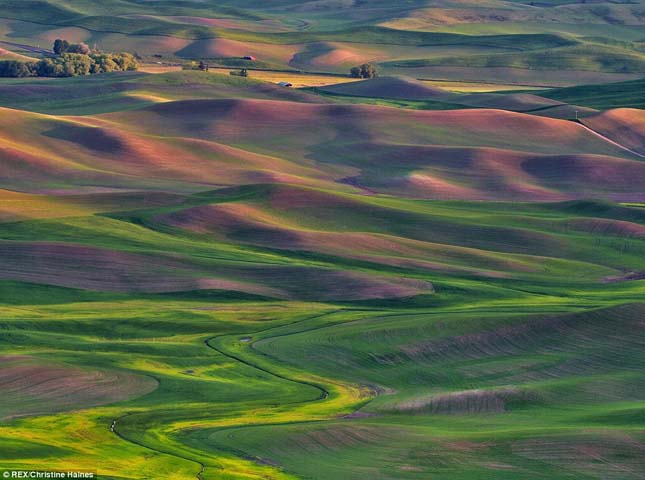 Christine Haines varázslatos fényképeket készített Palouse festői látványáról. A Washington államban található völgy valóban gyönyörű. Palouse egy gazdag mezőgazdasági terület, amely több, mint 7500 négyzetkilométeren terül el. A területet Toszkánához hasonlítják, azzal a különbséggel, hogy ezen a területen búza és repce nő. A kontrasztos színek és a domborzat miatt sokan festményeknek hiszik Christine Haines fényképeit.