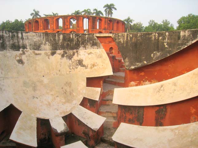 A két henger alakú torony látható: ez a Ram Yantra, a csillagok és bolygók horizont feletti magasságának és északi iránnyal bezárt szögének mérésére szolgáló építmény. A két henger magassága egyenlő a sugarával, a henger középen pedig egy ugyanilyen magasságú oszlop áll. A csillagok és bolygók adatait abból lehet meghatározni, hogy a műszer középpontjában elhelyezkedő, az oszlopnak háttal álló megfigyelő melyik ablakon keresztül látja a kérdéses égitestet. Az obszervatórium negyedik műszere a Misra Yantra névre hallgat. Tulajdonképpen ez is napóra. A leolvasás a négy fehér félkör valamelyikén történhet; ezekről azt tudhatjuk meg, hogy hány óra van a leolvasás időpontjában a föld négy másik csillagvizsgálójában. Az egyik skála a Greenwich-i időt mutatja, a másik a Zurich-i obszervatórium órája, a harmadik egy japán, a negyedik pedig egy csendes-óceáni csillagvizsgálóra vonatkozik. A delhi obszervatórium tapasztalatai alapján Jai Singh négy másik csillagvizsgálót is építtetett, Ujjainban, Benaresben, Mathurában és a saját magáról elnevezett fővárosban, Jaipurban.