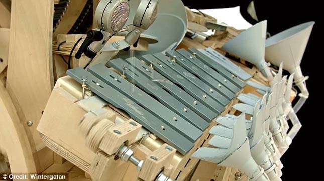 Lenyűgöző szerkezetet alkotott meg Martin Molin, a svéd Wintergatan zenekar tagja. A fából készült, aprólékosan megmunkált hangszerét 2000 acélgolyó segítségével szólaltatja meg. A zenész két évig dolgozott rajta, mivel a tökéletességre törekedett, a végeredmény pedig valóban elképesztő lett.
