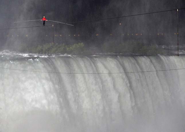 Egy mindössze 5 centiméter széles kábelen, huszonöt perc alatt egyensúlyozott át a Niagara-vízesés két partja között az Egyesült Államokból Kanadába az amerikai akrobata, Nik Wallenda. Az 550 méter hosszú kábelt közvetlenül a vízesés felett, 46 méteres magasságban feszítették ki. A félelmetes mutatványra tavaly nyáron vállalkozott a bátor “kötéltáncos”.