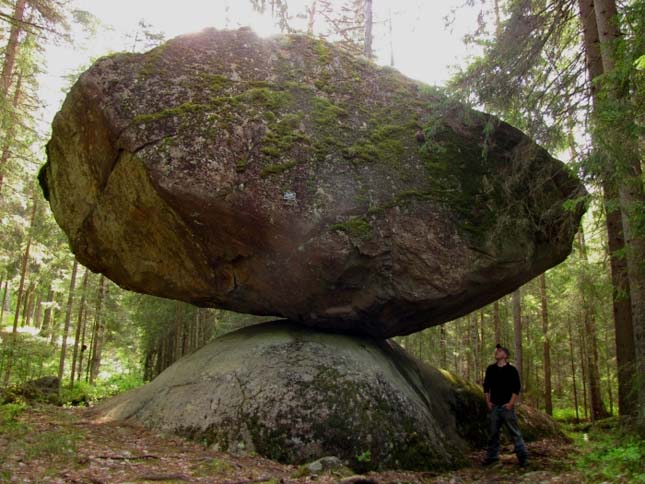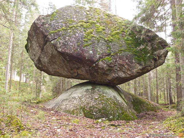 Finnországban látható ez az érdekes geológiai jelenség. Dél-Savnonia erdejében található Kummakivi, az egyensúlyozó szikla. Kummakivi finn kifejezés, jelentése furcsa kő. A Kummakivi-követ és és a mintegy 180 000 tavat a jégkorszaki gleccserek hozták létre az utolsó jégkorszak óta. A híres, egyensúlyozó követ egy ott található, terjeszkedő gleccser hozta magával, majd végül letette azt. Miután elolvadt alóla a jég, pont egy másik szikla tetejére került. A Kummakivi-kő a természet egyik igen érdekes remekműve.