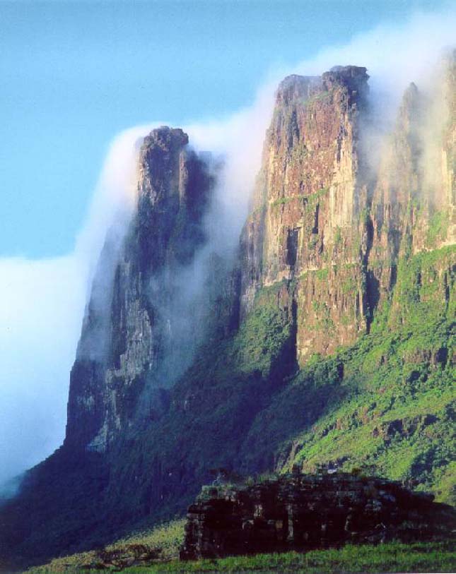 Mount Roraima Brazília, Guyana és Venezuela hármas határánál helyezkedik el. Egyrészt alakja is különleges, másrészt a csúcsot állandóan körülvevő felhők és az őshonos állatvilág miatt titokzatos. A hegycsúcs tulajdonképpen egy fennsík, a szakértők szerint a világ egyik legrégibb geológiai formációja. A feltételezések szerint a platót a víz és a szél formálta, azt azonban, hogy bizonyos állatfajok miért nem találhatók meg sehol máshol a világon egyenlőre megmagyarázhatatlan rejtély.