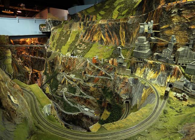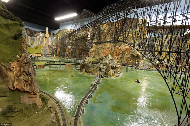 A különleges makettben még kanyonok is vannak, amik felett hidak ívelnek át. A leghosszabb 12 méter.
