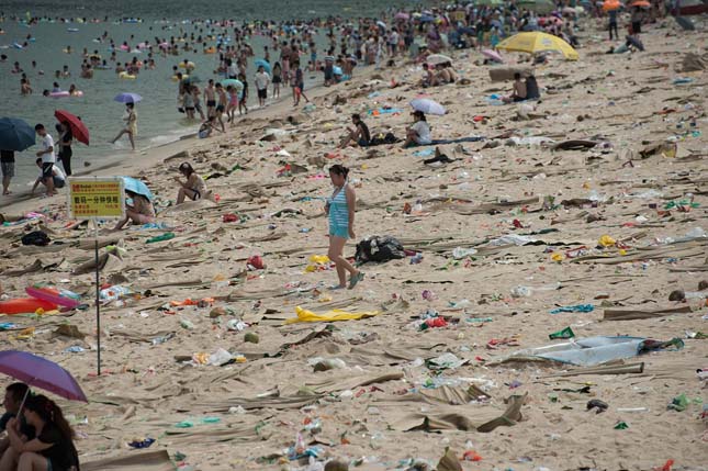 Garantáltan nem hozzuk meg a kedvet egy jó kis strandoláshoz az alábbi képsorokkal. Kínában nem ritka, hogy szeméthalmok között napoznak az emberek, mert ahol sok a turista, ott sok a szemét is. A következő képek Sencsen 160 ezer négyzetméteres strandján július elején készültek, ahol három nap alatt mintegy 362 tonna szemetet hagyott hátra az itt járt 480 ezer turista.