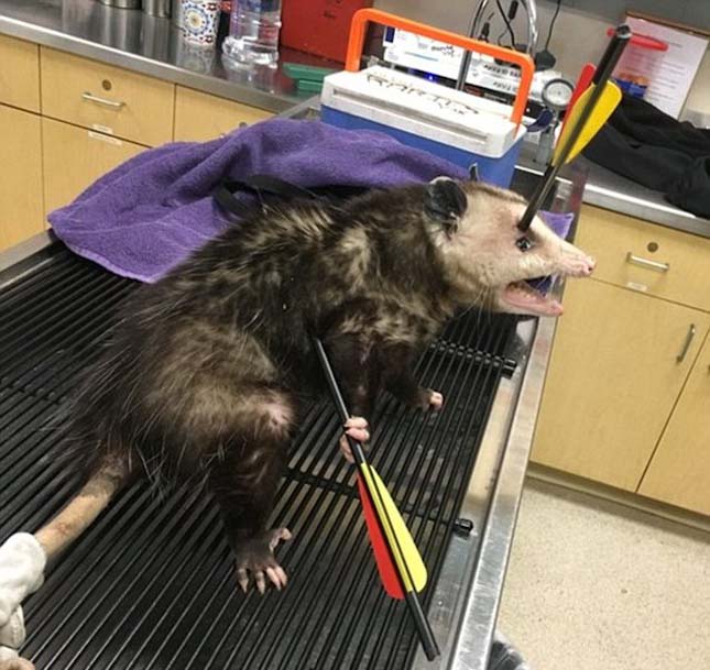 Rendkívül megdöbbentek a kaliforniai állatvédők amikor egy számszeríjjal meglőtt oposszumhoz riasztották őket. Az érthetetlen támadás áldozatául esett állatot Riverside városának egyik útkereszteződésében találták meg. Az oposszum ugyan túlélte a borzalmas támadást, de a fejébe és a testébe is egy-egy nyílvessző fúródott, amelyektől az állat kétségbeesetten próbált megszabadulni. Az állatvédők azonnal a megyei állatvédelmi hatóság menhelyén lévő klinikára szállították (Western Riverside County Animal Shelter), ahol az állatorvosok eltávolították az oposszum testébe fúródott nyilakat, amik szerencsére nem okoztak életveszélyes sérüléseket a belső szerveiben. Az állat súlyosan roncsolódott bal szemét viszont kénytelenek voltak eltávolítani. Megmentőinek köszönhetően azonban már biztos, hogy a Robinnak elnevezett oposszum teljesen fel fog épülni.