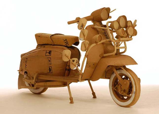 Főként hétköznapi tárgyakat formáz meg a kartonból, de vannak történelmi és vallásos témájú szobrai is. Alkotásai között vannak autók, biciklik, mikroszkópok, hangszerek és földgömbök is. Az újrahasznosított alapanyagból készült alkotásai kifejezetten élethűek.