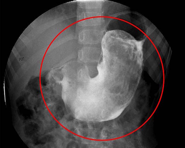 Egy Rapunzel-szindrómában szenvedő kislány röntgenképe, aki 2015-ben műtöttek meg