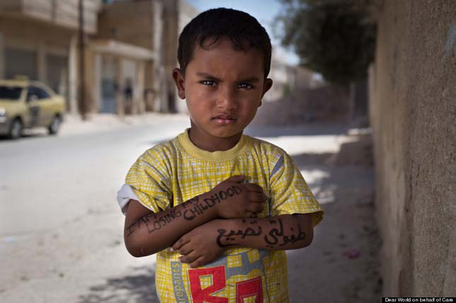Jordánia volt az úticélja két amerikai fotósnak. Robert Fogarty és Benjamin Reece szeptemberben utaztak oda a nemzetközi segélyszervezet, a CARE International programjának keretében. Előbbi évek óta dolgozik a Dear World nevű projekten, melynek keretében emberek a karjaikra írt mondatokkal üzennek. Fényképezte már New Orleansban a Katrina hurrikán túlélőit csakúgy, mint egy másik hurrikán, a New Yorkot is elérő Sandy áldozatait.