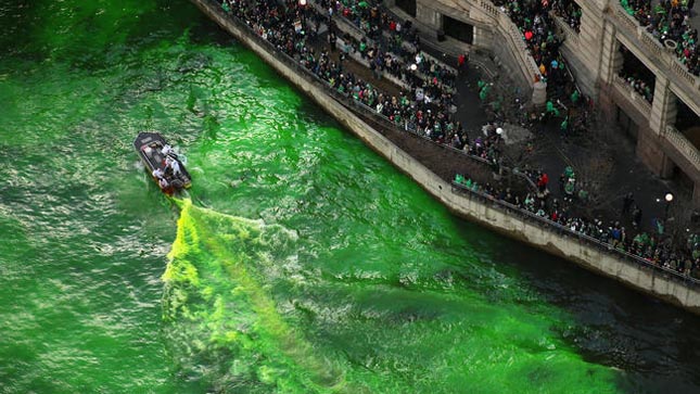 A város folyóját egy növényi alapú porfestékkel színezik neonzöldre. A nagy attrakció nem is olyan költséges, mindenesetre annál látványosabb. A nagyjából 16 ezer forintnak megfelelő összegbe kerülő festékkel a hajósok ötórányi oda-vissza hajózás nyomán készen is vannak a Szent Patrik-napi látványossággal.